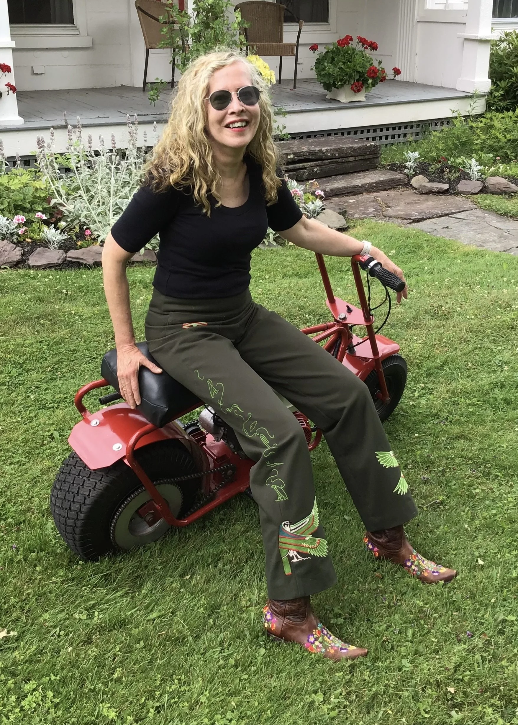 After many years working in NYC as master tailor to the undisputed finest in fashion and film, chainstitch embroidery artist Jean Kormos lives and works on a fairytale farm in Hobart, New York.